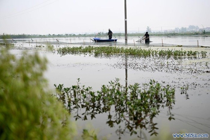 5月15日,在蚌埠市五河县沱湖乡大岗村,工作人员在捕捞小龙虾。新华社记者 黄博涵 摄